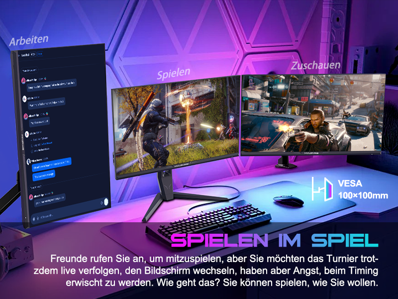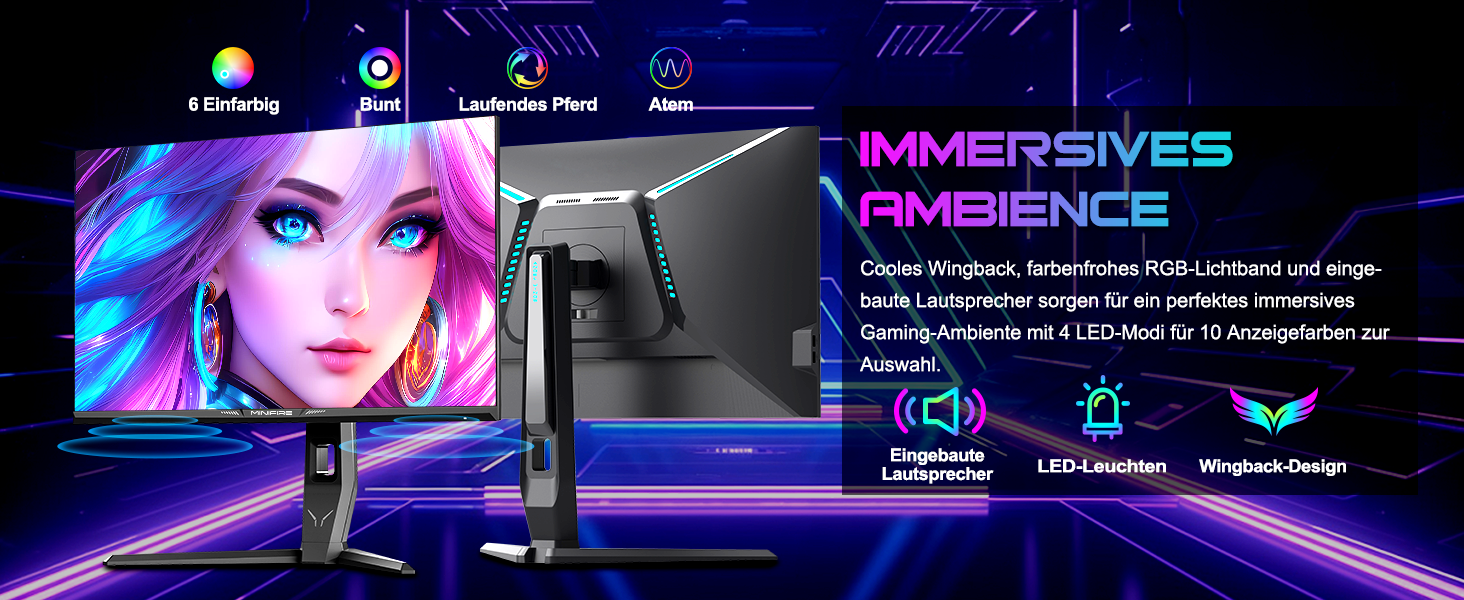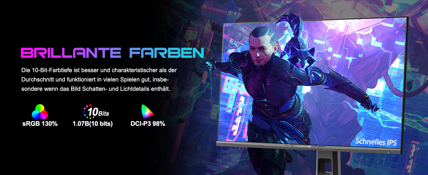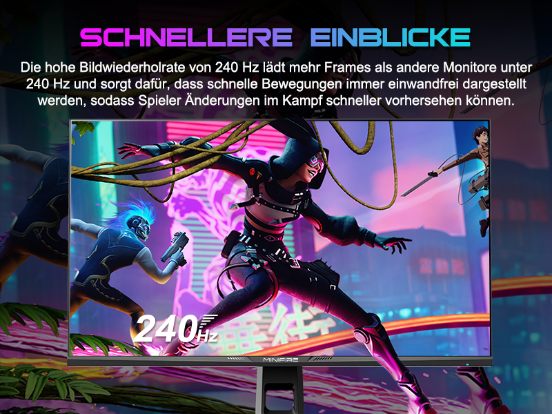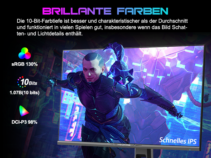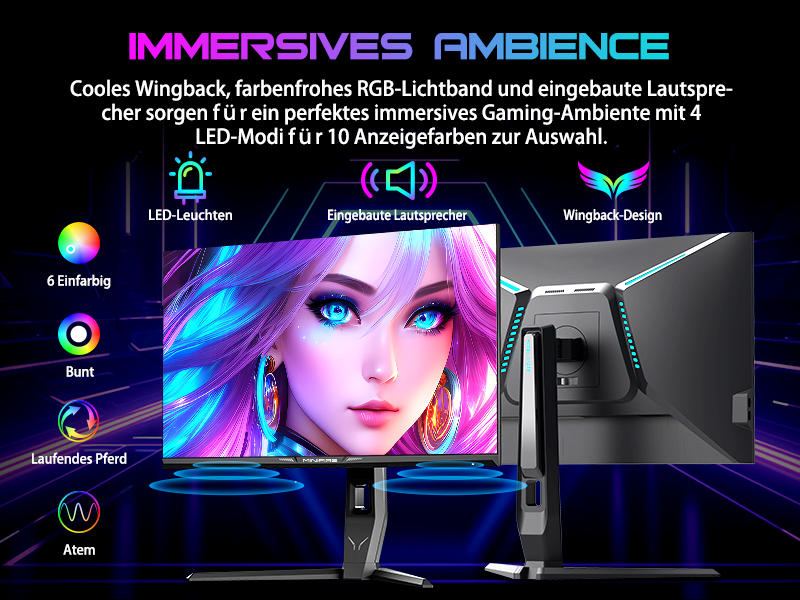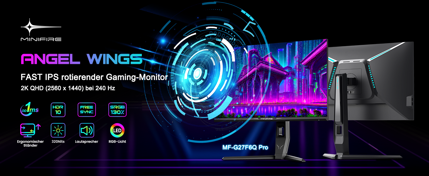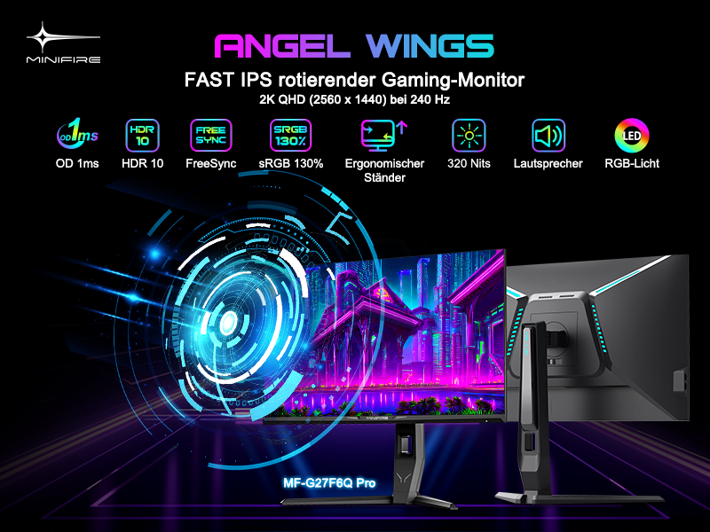 - Bildschirmfarben: HDR 10 丨10 Bit 丨DCI-P3 98 % 丨sRGB 130 % 丨178 V/H Betrachtungswinkel 27 Zoll WQHD (2560 x 1440) @ 240 Hz schneller IPS-Rotations-Gaming-Monitor mit cooler RGB-Beleuchtung.