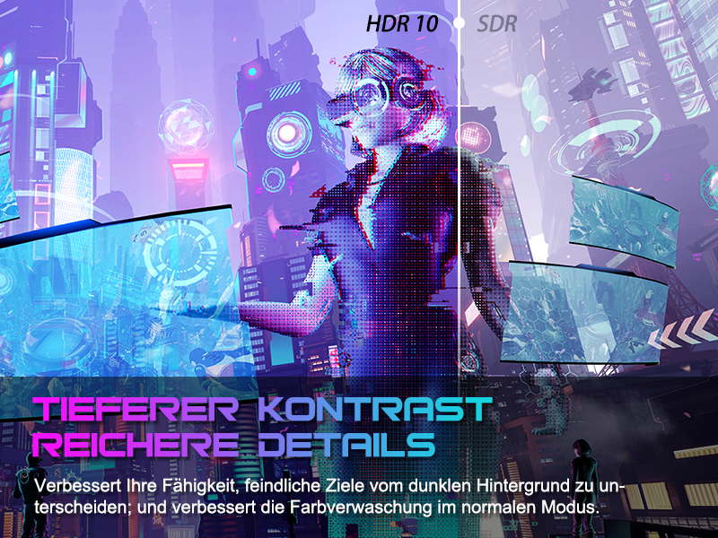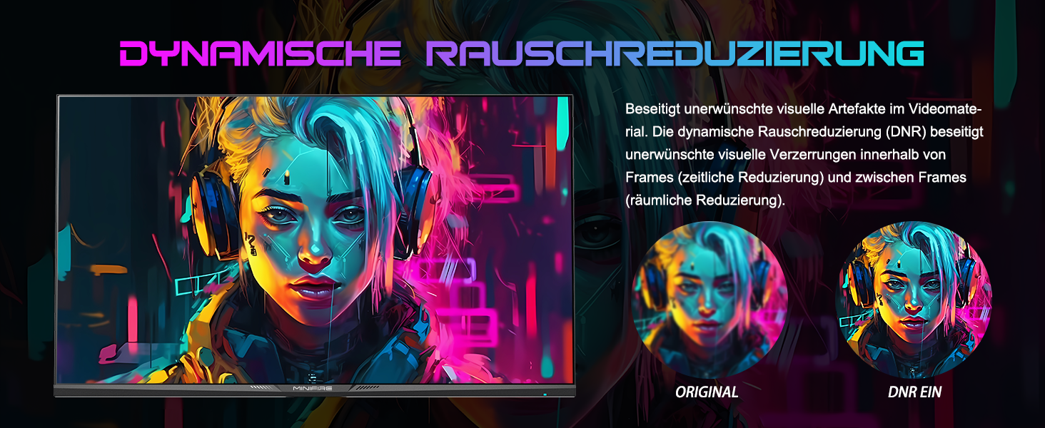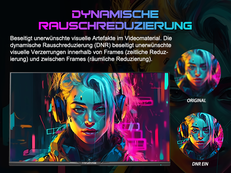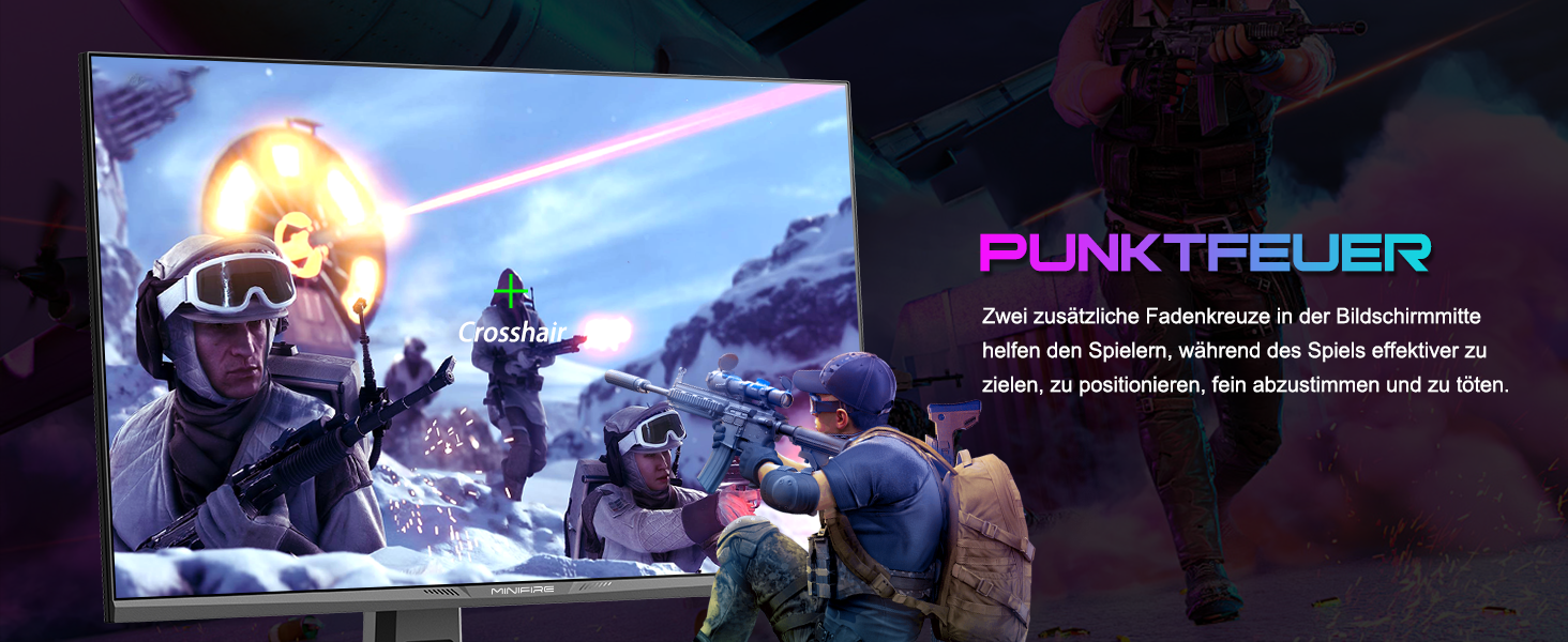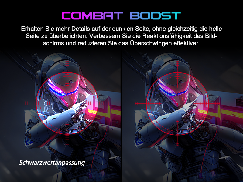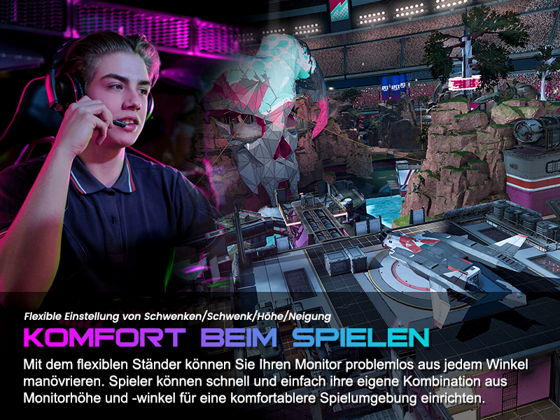 - Leistung: OD 1 ms Reaktionszeit, MPRT-Technologie für geringe Bewegungsunschärfe, Rauschunterdrückung, adaptive Synchronisierung, 320 Nits Helligkeit, Crosshair/RTS/FPS-Spieleassistent.