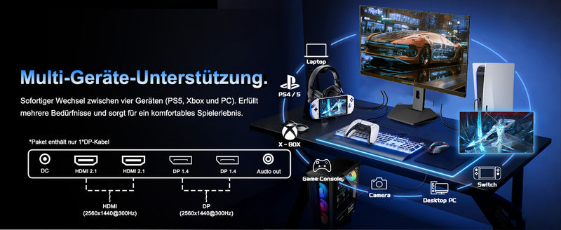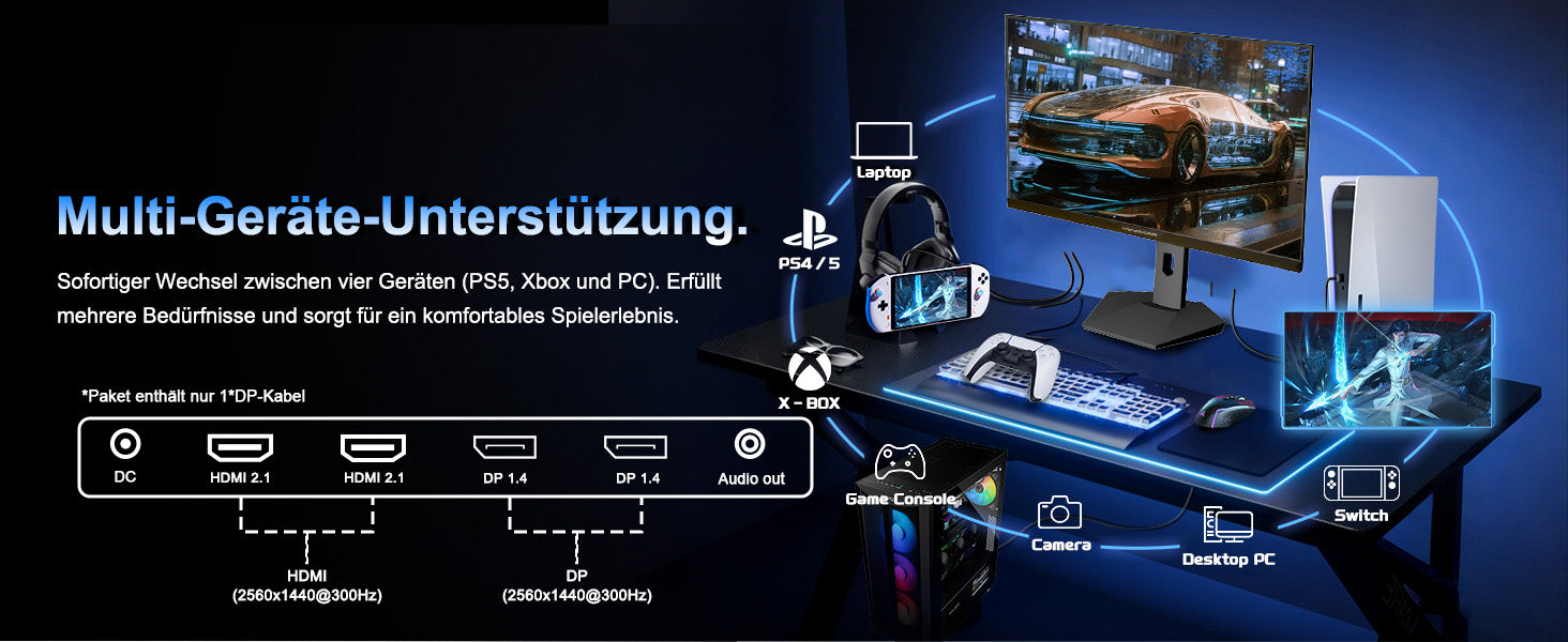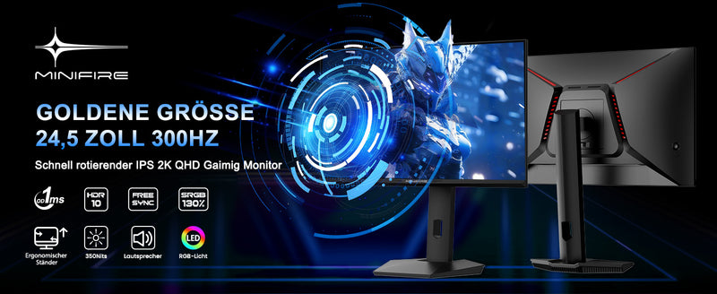 - 24.5 Inch 300Hz/240Hz Gaming Monitor QHD 2560×1440 Fast IPS Gaming Computer Monitor Support PIP/PBP
