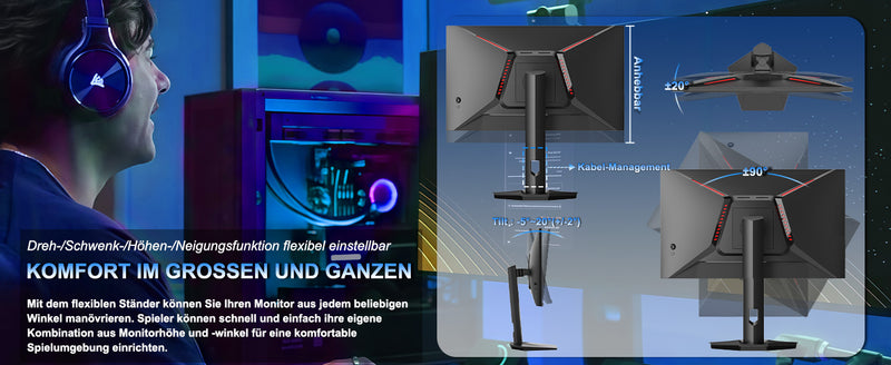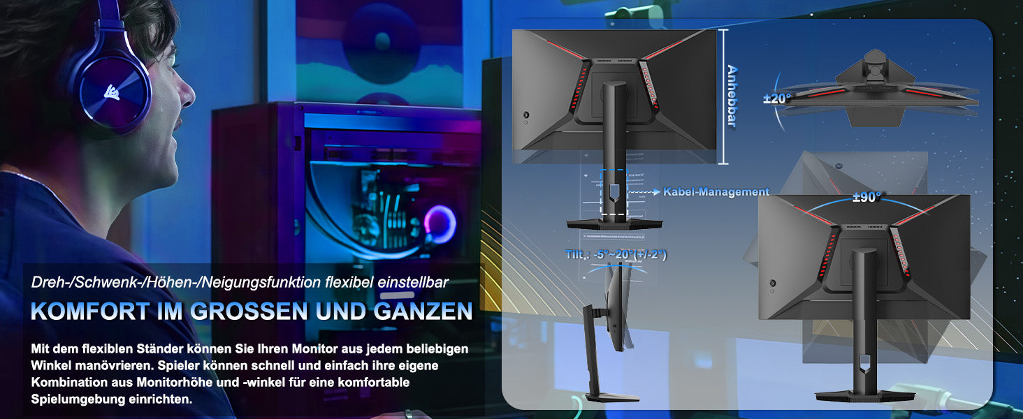 - Excellent image and ergonomic design - 130%sRGB/DCI-P3 98% colour space, 350 nits brightness, HDR; anti-fault, low blue light; 178° viewing angle; rotating/swivel/height: -90° ~ +90°/L20°~R20°/0~110mm; tilt: -5°~20°(+/). -2°), support PIP (Picture in Picture) / PBP (Picture by Picture) Connect two devices at the same time