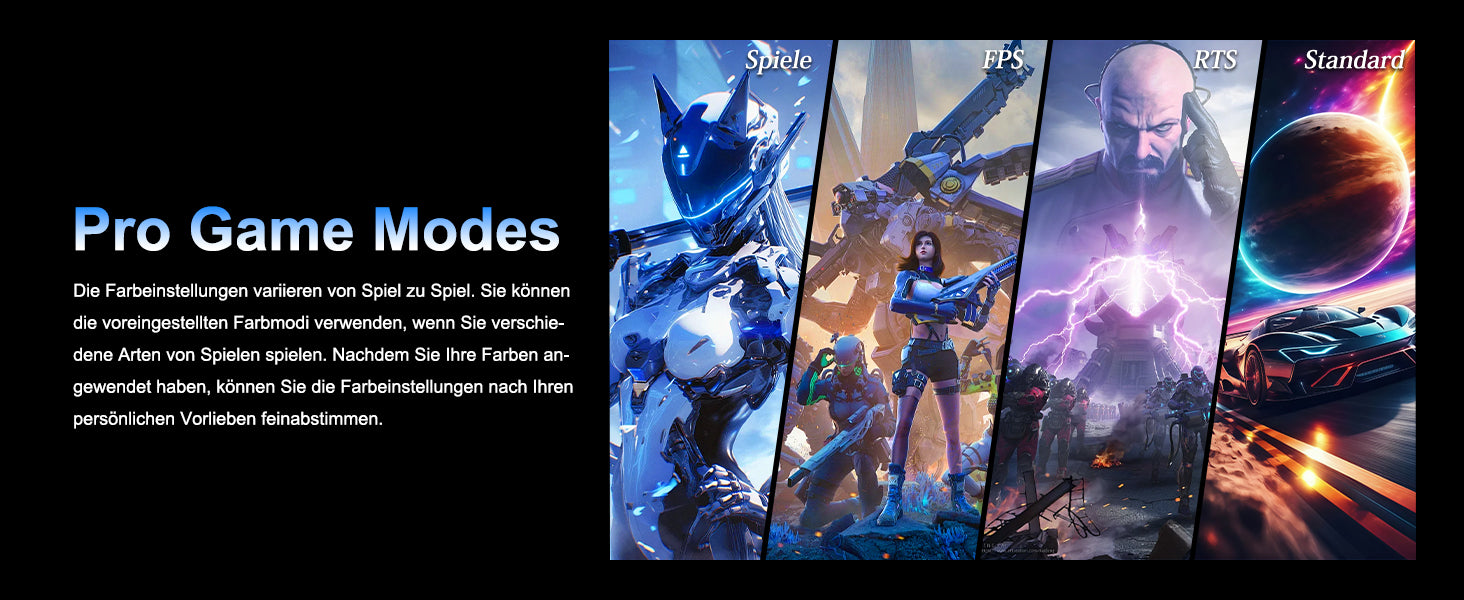 - Game mode: AI reticle (automatically changes reticle color with the background), AI mode with low blue light, timer, magnification mode (with built-in 4x sniper rifles scope when on), aspect ratio adjustment (16:9, 4:3, back-and-forth), owl function (enhanced dark details to clearly see dark enemies see see