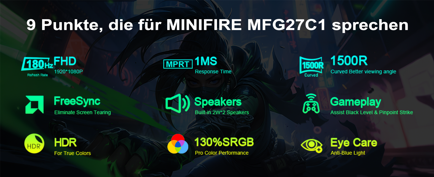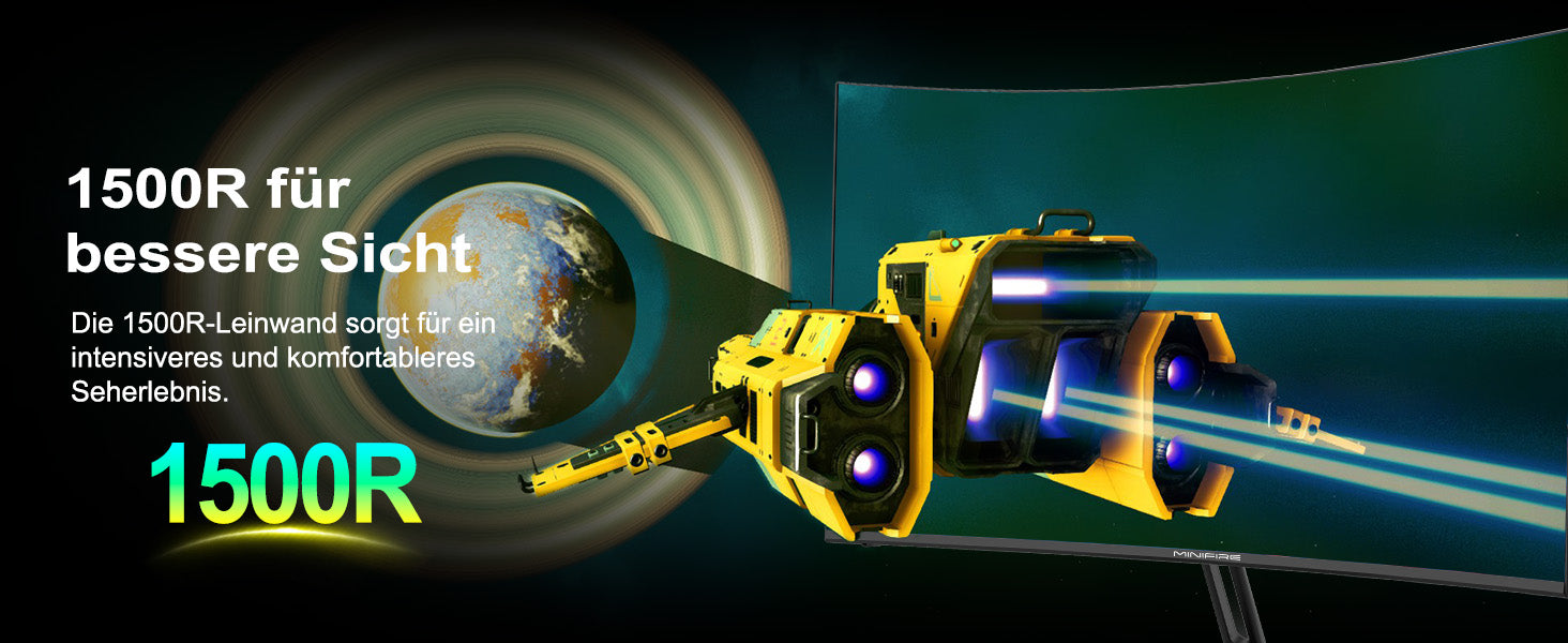 - Immersion through curved design: The Minifire gaming monitor with its curved 27 inch VA panel technology provides an immersive gaming experience and improves visibility, which is especially helpful during intense gaming sessions.