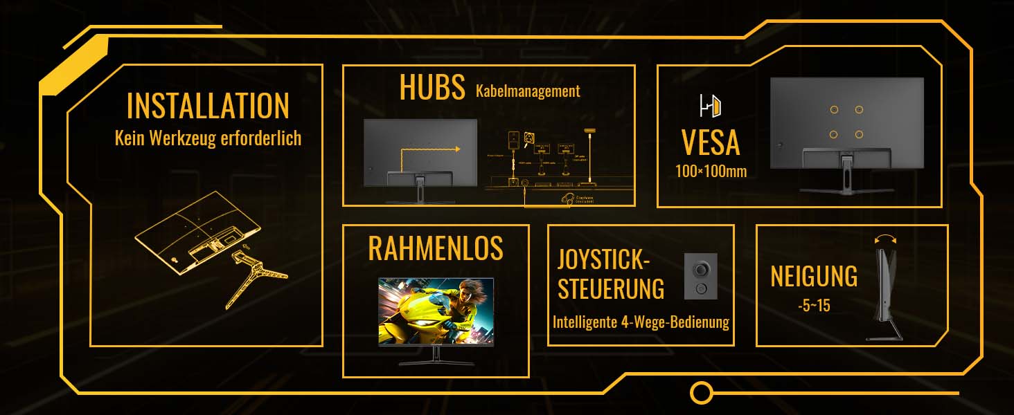 - Ergonomic tilt: -5° to 15°, 178° V/H viewing angle, flicker-free, 75 x 75 mm VESA