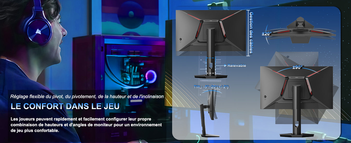 - [Rich Display Colors]: sRGB 130% | 8-bit | DCI-P3 98% | 178° vertical/horizontal viewing angle | 24.5-inch WQHD (2560 x 1440) | IPS Pivot Fast Gaming Monitor, 300Hz High Refresh Rate.