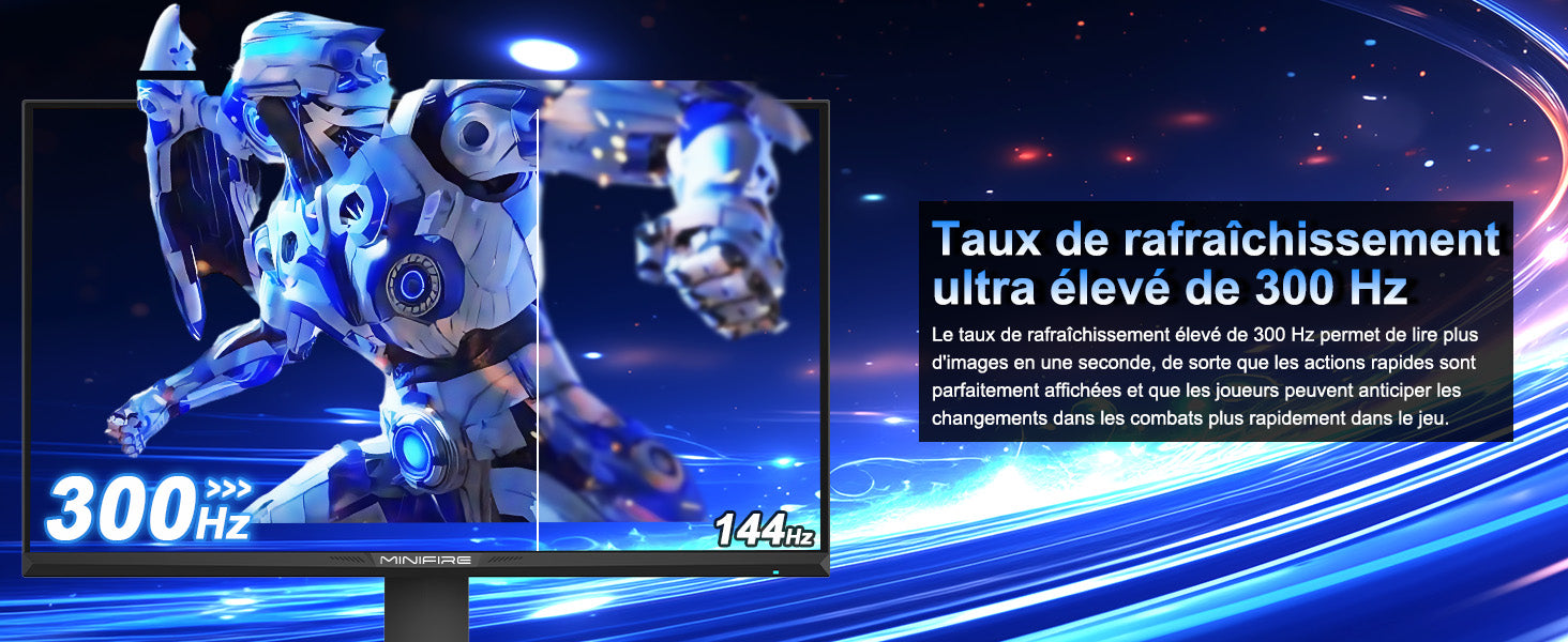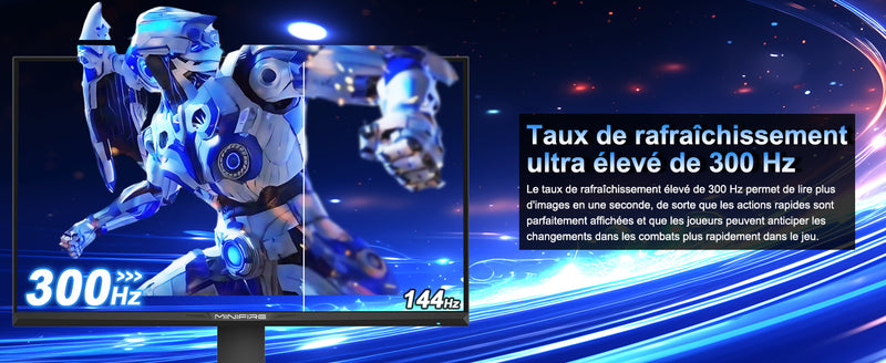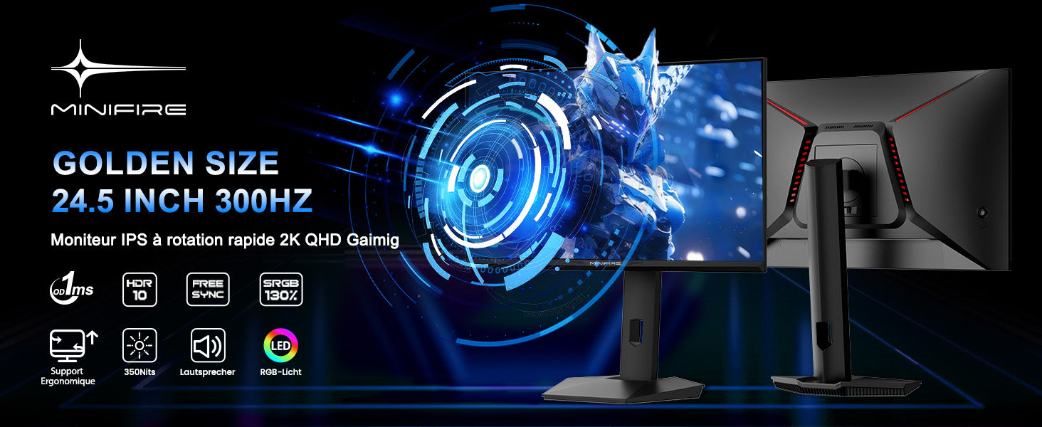 - [New High Performance]: 24.5-inch gold size, 300Hz high refresh rate, 1ms OD response time, MPRT Low Motion Blur technology, noise reduction, adaptive sync, 350 nits brightness.