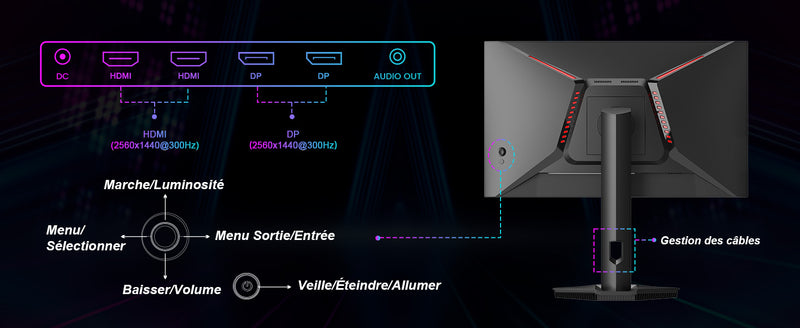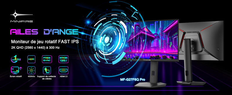 - Screen Colors:HDR 10 Bit/ DCI-P3 98% / sRGB 130% / 178 °V/H Viewing Angle 27 inch QHD (2560 x 1440) 300Hz Fast IPS Rotating Gaming Monitor