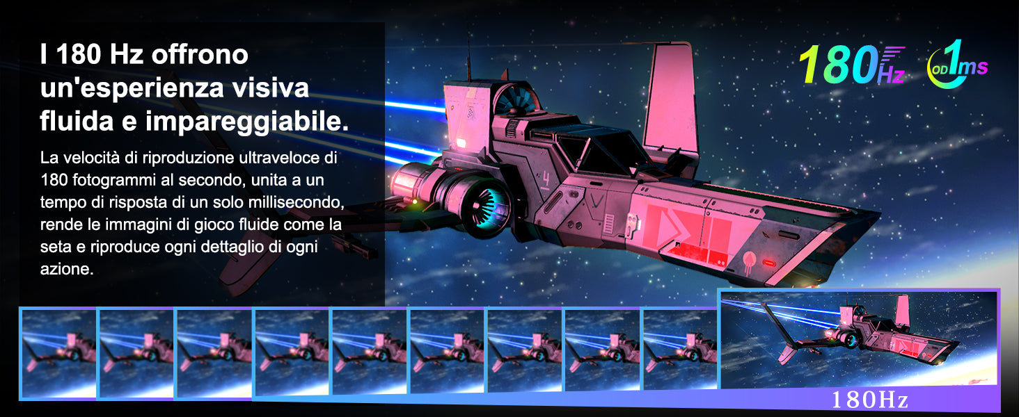 - Response time: OD 1ms | Refresh rate: 180Hz | Brightness: 300 nits | sRGB: 130% | HDR, so you can restore the original colours.