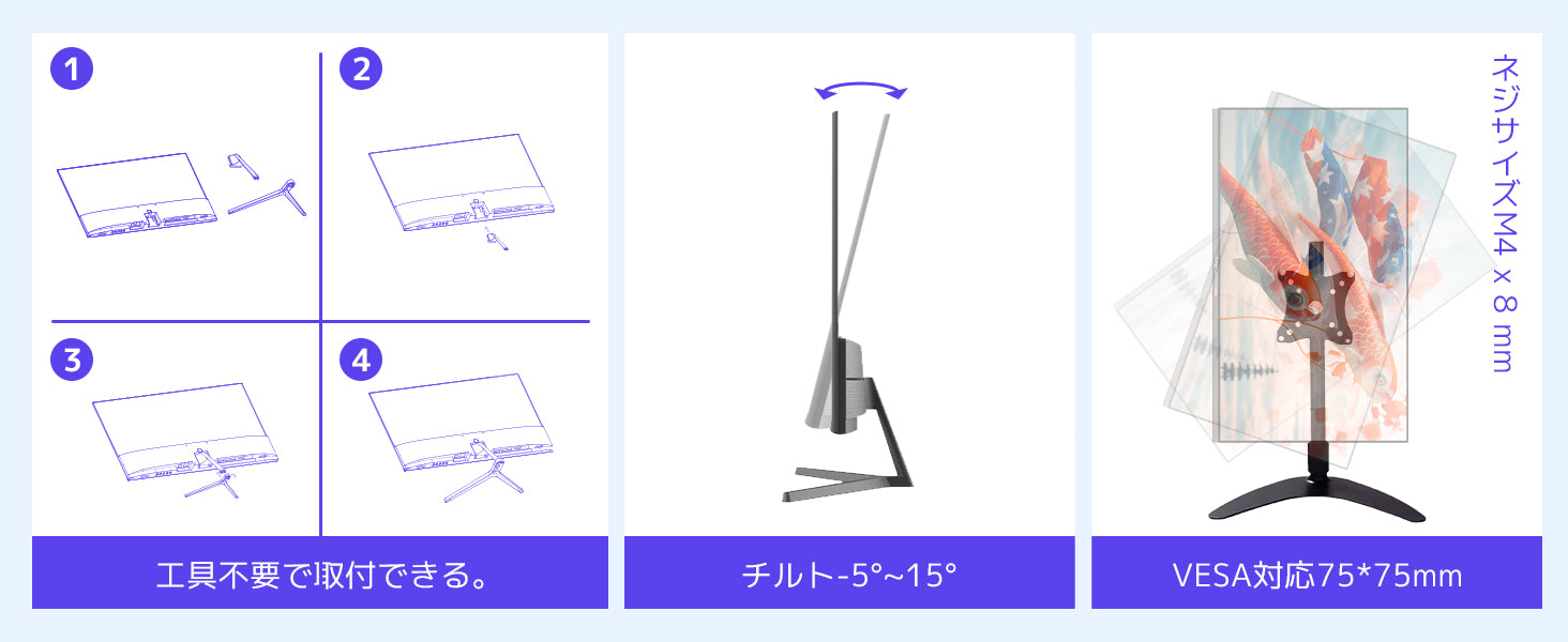 - [Refresh Rate] 100Hz, [Response Speed] 5ms [Tilt Angle] 22°/-5°, Eye Care, Blue Light Reduction, Flicker Free, Adaptive Sync, [Game Mode] RTS/FPS/RACING/Screen Assistant