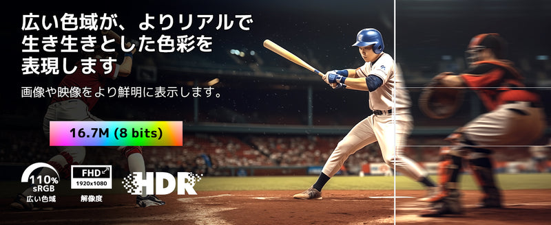 - [Screen Size] 24 inch IPS Monitor, [Max Resolution] 1920 x 1080, [Aspect Ratio] 16:9, [Contrast Ratio] 1000:1, [Brightness] 250cd/m2, [Color Gamut] 72% NTSC [Color Depth] 16.7 million Colors, 8Bit, HDR10