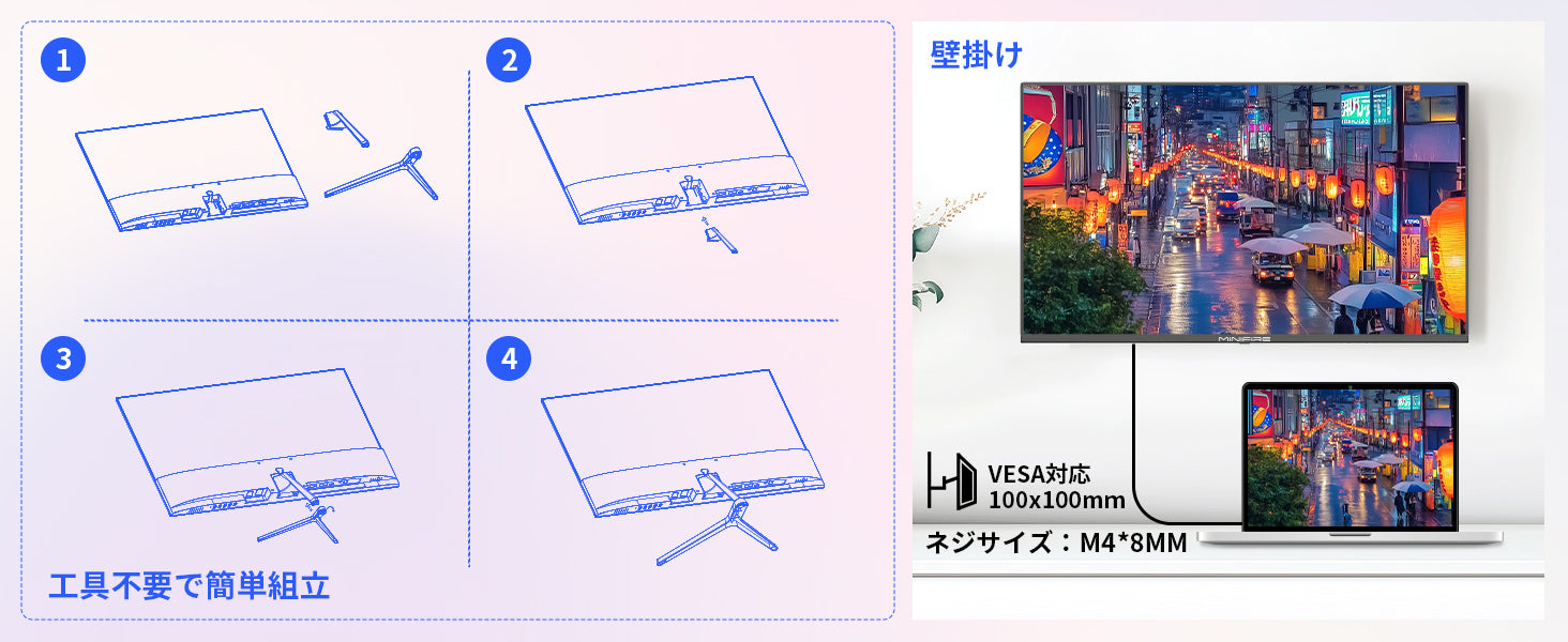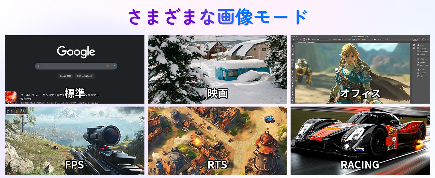 - [Refresh Rate] 100Hz, [Response Speed] 5ms [Tilt Angle] 22°/-5°, Eye Care, Blue Light Reduction, Flicker Free, Adaptive Sync, [Game Mode] RTS/FPS/RACING/Screen Assistant