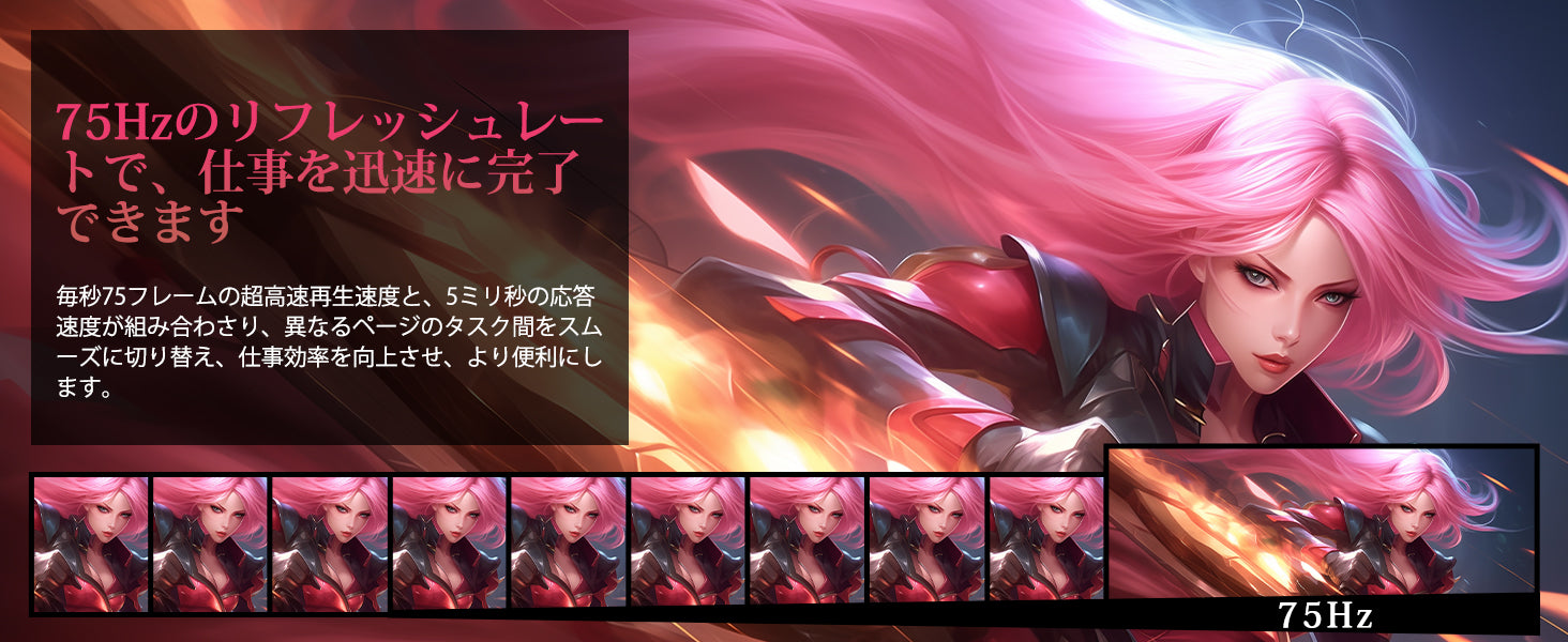 - [Refresh Rate] 75Hz [Response Speed] 14ms (OD 5ms), [Angle Adjustment] Front and Rear Angle (-5° to 15°+/-2°), 178° Wide Field of View, Eye Care, Blue Light Reduction, Flicker Free, Adaptive Sync and VESA Compatible (100x100mm)