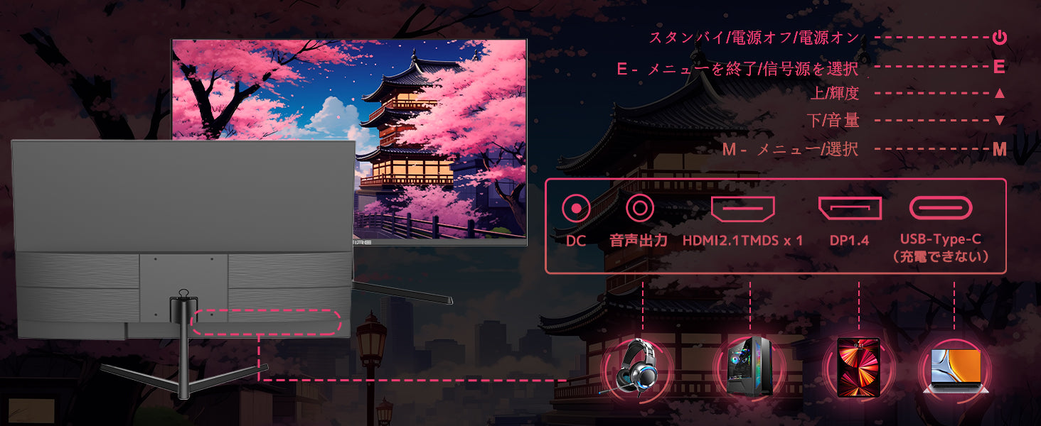 - [Input Terminal] HDMI 2.1TMDS x 1, DP1.4 x 1, Type-C x 1 [Output Terminal] Audio Output with Speaker [Main Accessories] HDMI Cable, Adapter, Stand, Instruction Manual