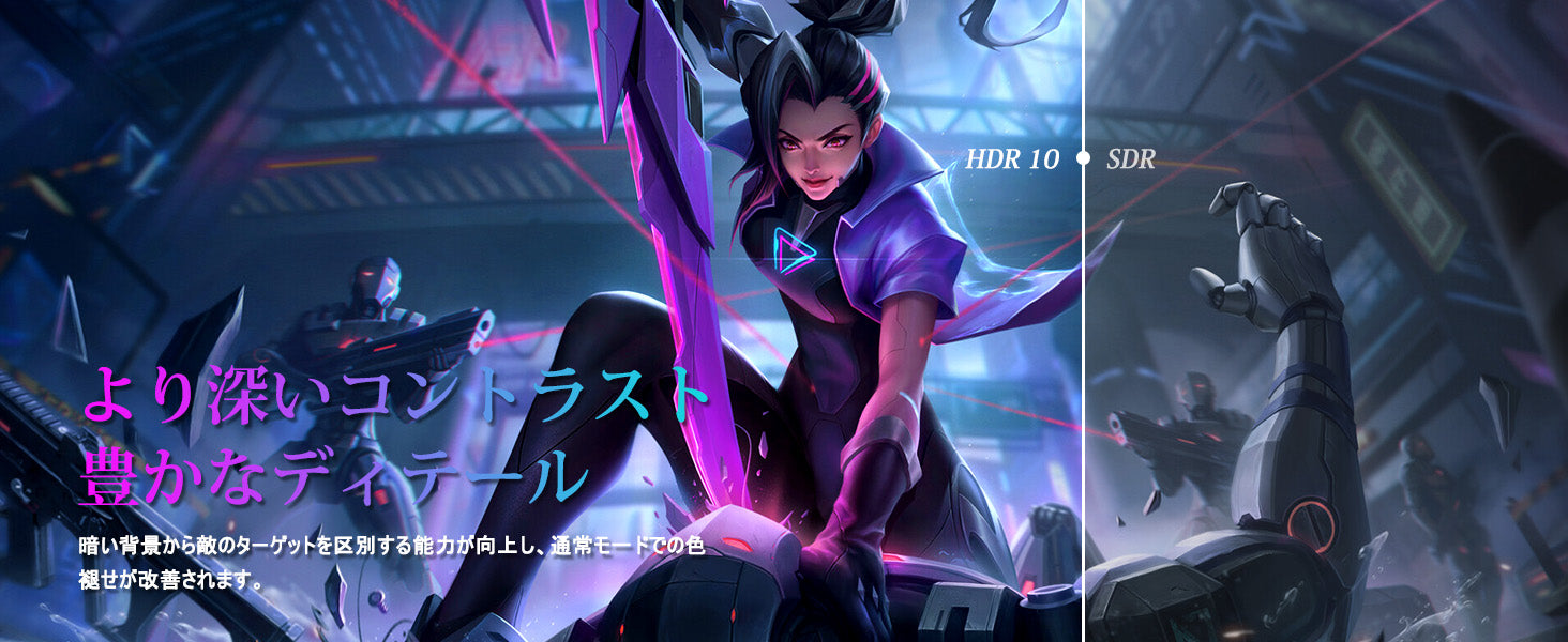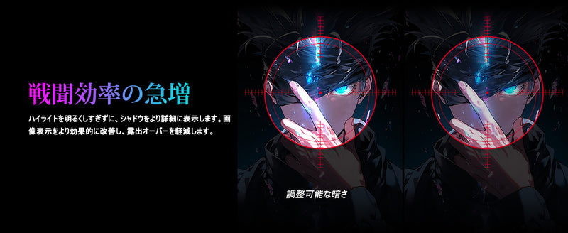 - [Other Features Features] Equipped with Adaptive Sync technology to effectively prevent screen tearing Supports HDR to enhance brightness and darker contrast for more realistic footage. In addition, it features blue light cutting and flicker-free features, so you can enjoy the game while protecting your eyes