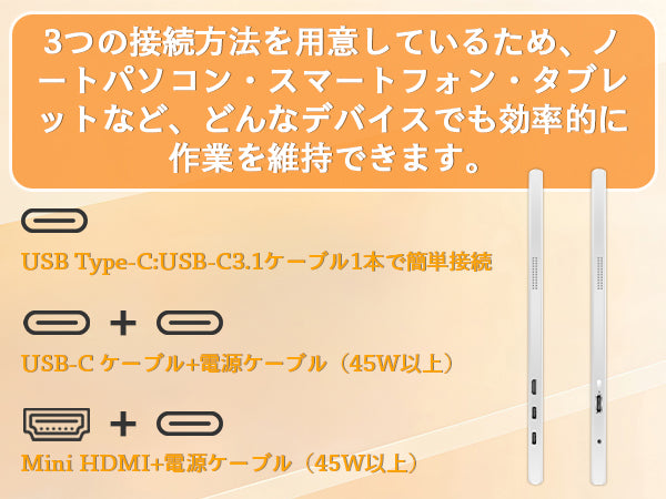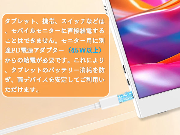 - Complete Connection with 1 USB-C Cable: Equipped with a full-function Type-C port that supports Power Delivery (45W max), so you can simultaneously connect video, audio and power supply to your compatible laptop or tablet with one device. Keep your desk organized and tidy. It also has a mini HDMI connector to support a variety of devices. Built-in speaker and 60Hz refresh rate make watching videos between work and light gaming. Comes with a USB Type-C to C cable and HDMI to Mini HDMI cable, so you can use it from the day you receive it. Power adapter is not included. To power your tablet or smartphone, please use the PD compatible adapter (sold separately). Dimensions with PU cover: W x H x D: 14.4 x 9.2 x 0.6 inches (364 x 234 x 15 mm); Dimensions without PU cover: 9.1 x 0.4 inches (230.7 x 10.9 mm); Weight with PU cover: 1.5 lbs (0.64 kg); Package dimensions: W x H x D (429.63 x 23 x 23 x 292 x 61 mm); Packing Weight] 1. 93kg, [Power Consumption] <10W