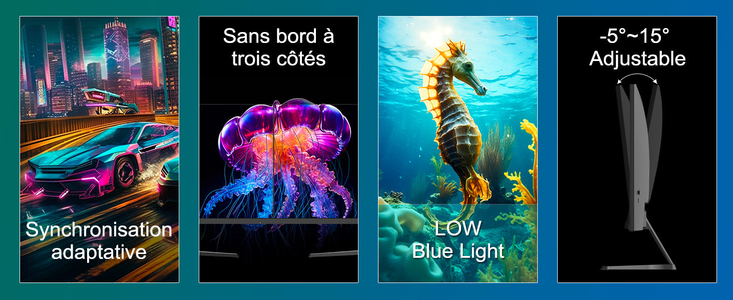 - [Conception Sans Cadre] Moniteur 22 Pouces Sans Cadre, Panneau IPS 75Hz, Résolution Full HD FHD (1920 x 1080), Temps de Réponse de 1ms, Technologie de Synchronisation Adaptative, pour un enfère de l'expérance de Jeu et de Bureau FLUIDE et immersive.
