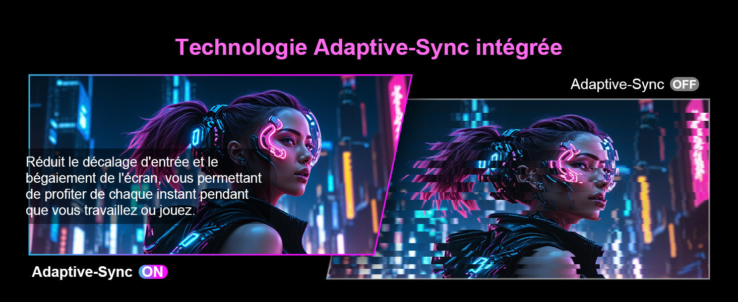 - [EXPÉRIENCE VISUELLE IMMERSIVE] l'écran est doté de la technologie IPS pour la maison, les jeux ou le bureau. Les performances exceptionnelles en matière de couleurs permettent d'obtenir des noirs profonds et des blancs éclatants, et la technologie Adaptive-Sync porte votre expérience à un niveau supérieur.