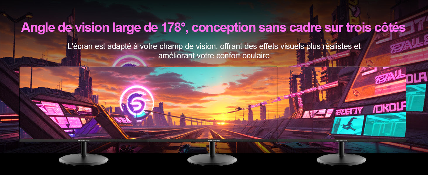 - [CADRE ULTRA-MINCE] le moniteur utilise un cadre ultra-mince pour optimiser la taille de l'écran et vous offrir une expérience visuelle immersive.