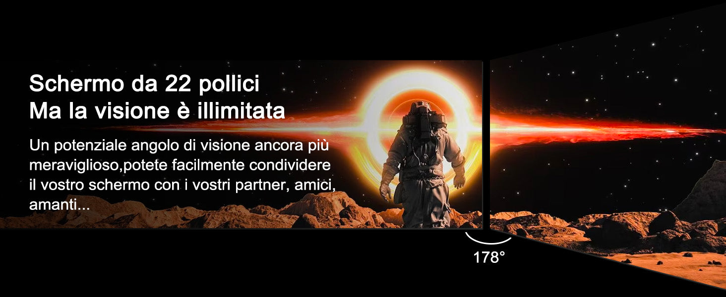 - [Protezione degli occhi] la tecnologia a bassa luce blu e senza sfarfalio migliora la protezione degli occhi e ne allevia efficacee l'Affaticamento; luminosità: 250 nits; frequenza di aggiornamento: 100 Hz; tempo di risposta: 1 ms; Gamma Cromatica: Srgb110%, Colori Ricchi, a Grado di Regalare una Festa Visiva.