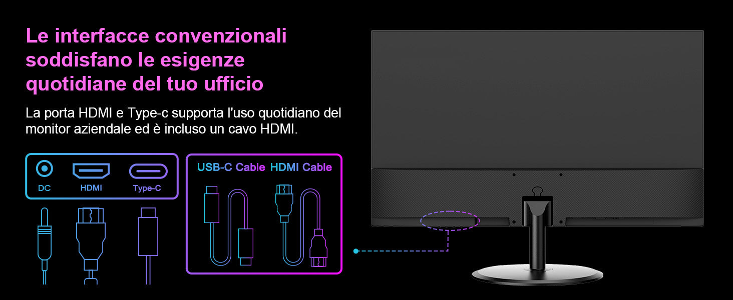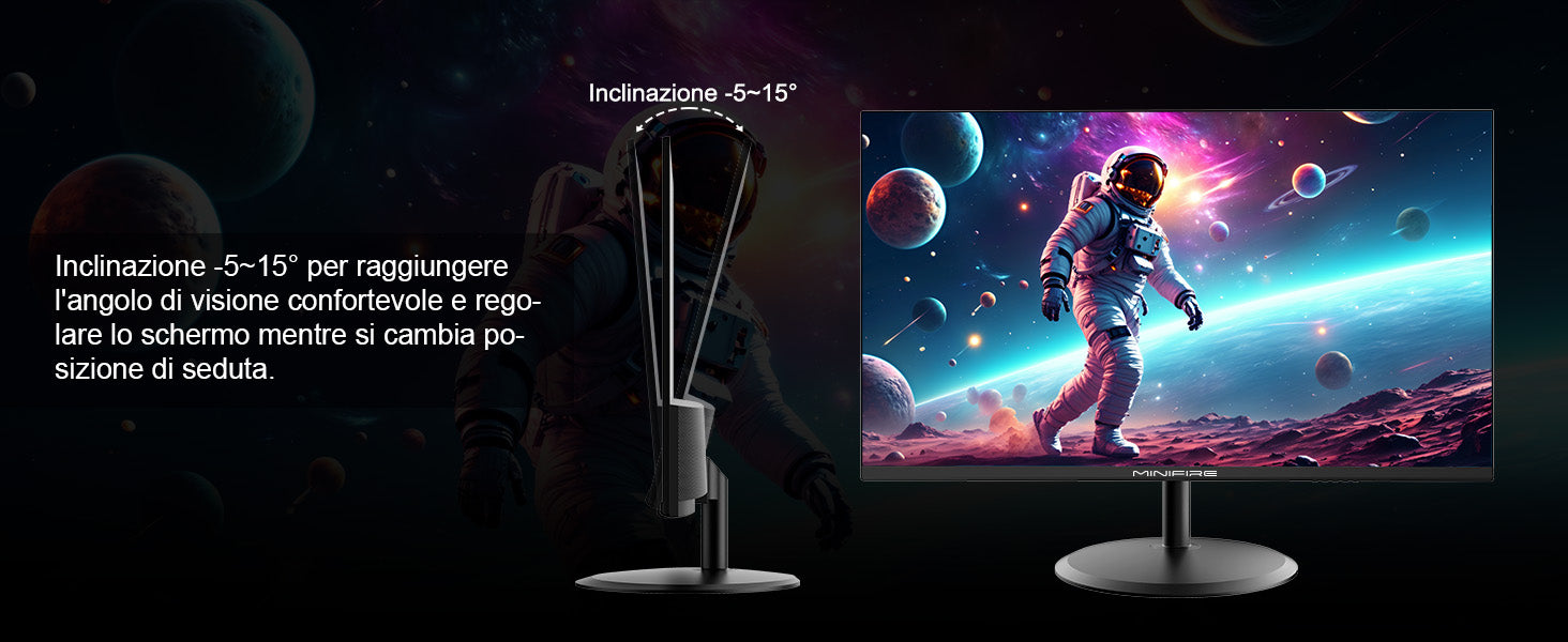- [DESIGN ERGONOMICO] lo schermo può essere inclinato da -5° a 15°, con un angolo di visione orizzontale e verticale di 178°. Allo stesso tempo, lo schermo è dotato di tecnologia di riduzione della luce blu e dello sfarfallio, quindi i tuoi occhi non si stancheranno (nota che questo modello non dispone di altoparlanti).