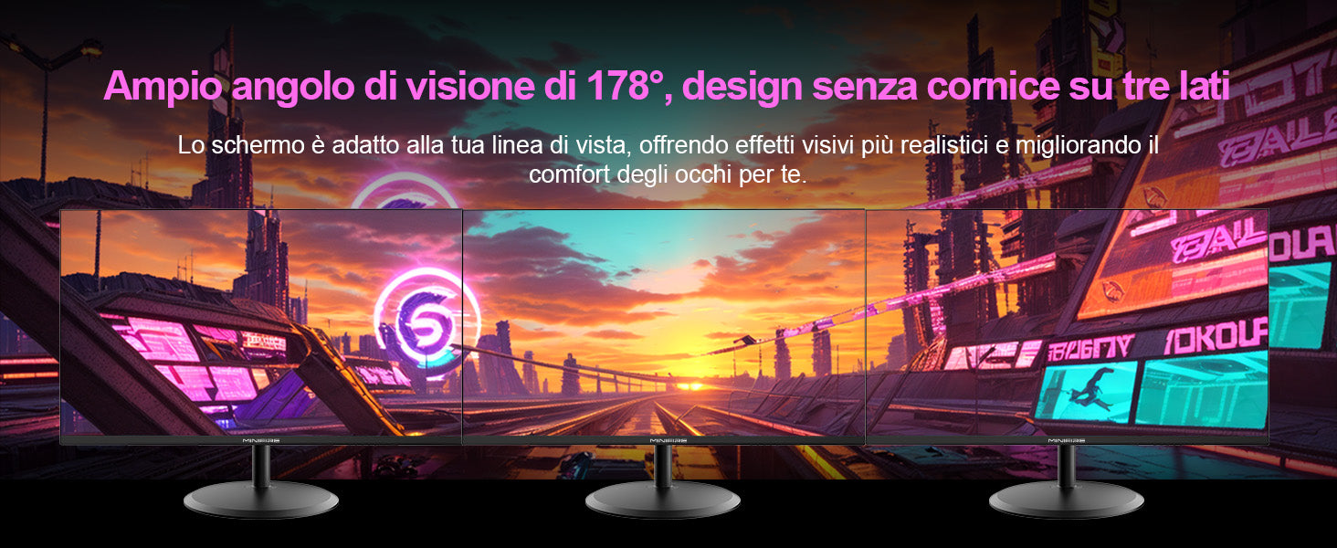 - [CORNICE ULTRA SOTTILE] Il monitor utilizza una cornice ultra sottile per ottimizzare le dimensioni dello schermo e offrirti un'esperienza visiva coinvolgente.