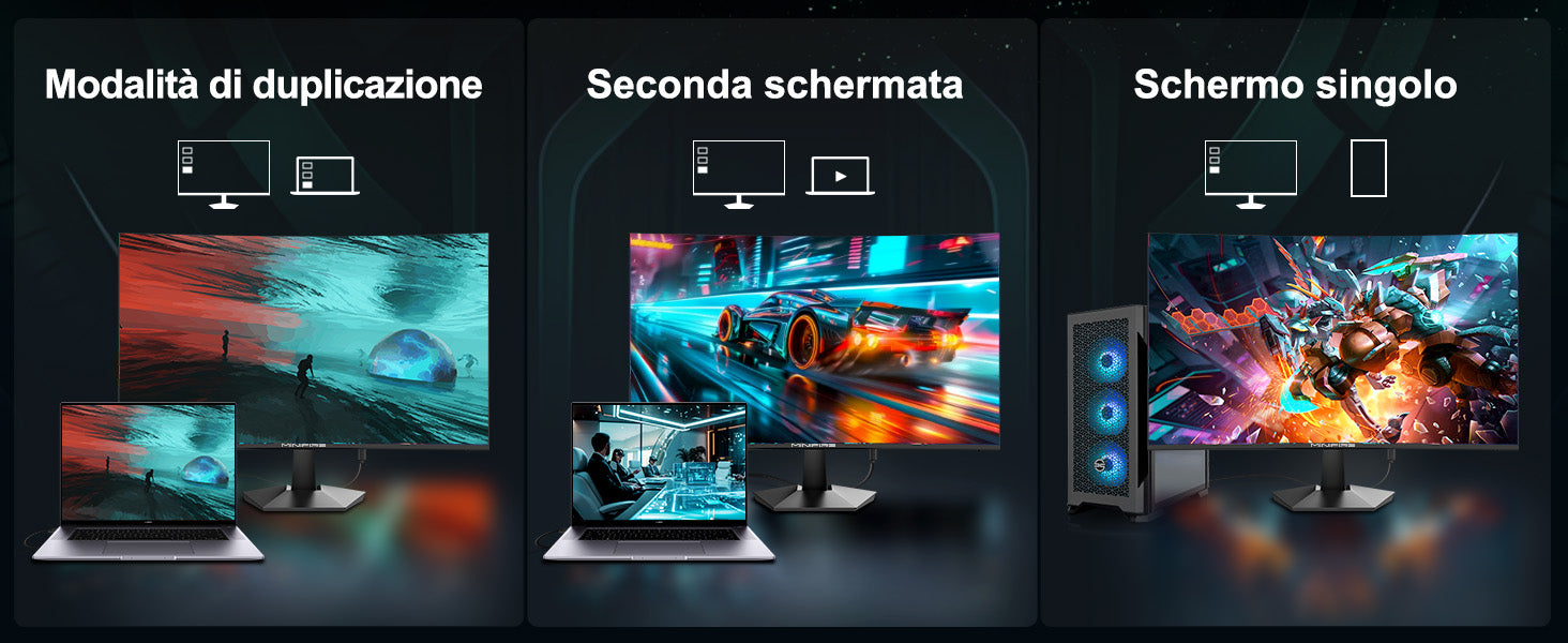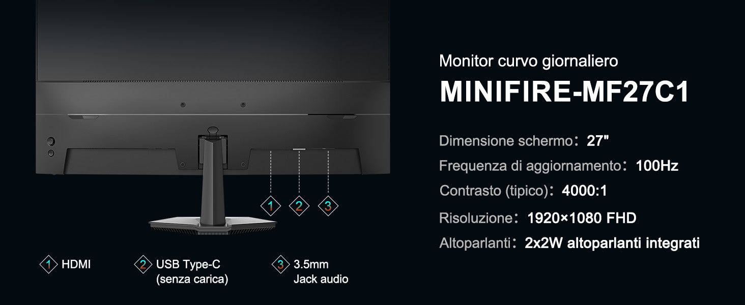 - Ingresso e uscita: HDMI 1.4 | Type-C 2.5W | Audio | Altoparlante incorporato| , interfacce multiple per soddisfare le esigenze di diversi scenari