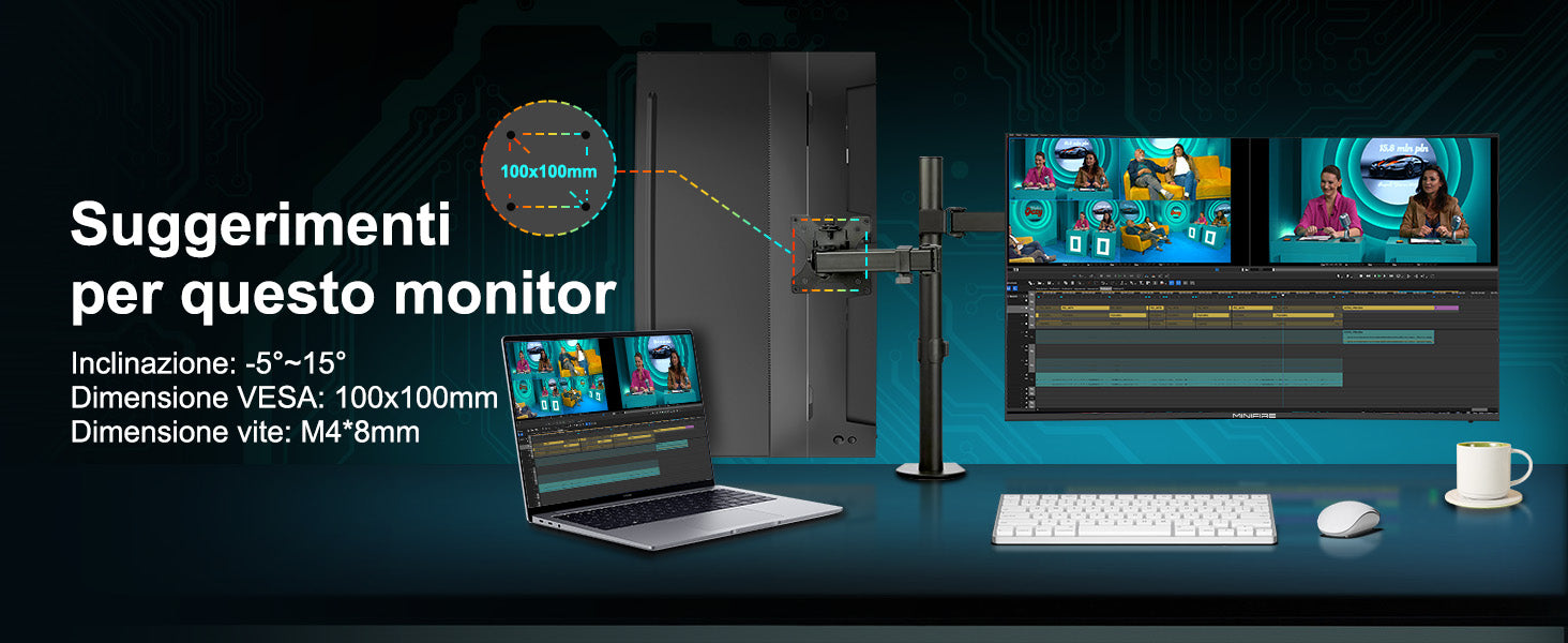 - Supporto ergonomico: angolo regolabile in modo ergonomico Inclinazione -5°~15°(+/-2°)丨Compatibile con VESA (75 x 75 mm) | Ampio angolo di visione di 178° | Supporta VESA | Altoparlanti integrati da 2 watt - Ideale per guardare video e giocare in uno spazio di lavoro luminoso.
