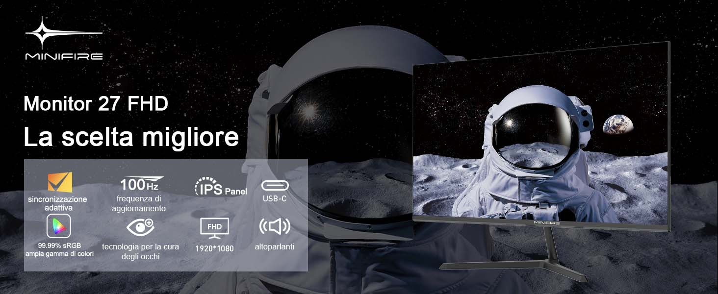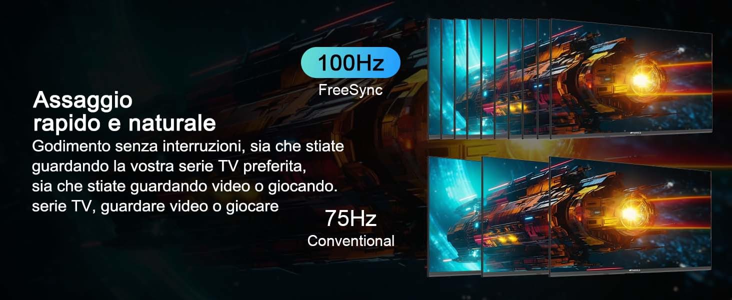 - Ricezione: HDMI 1.4 (frequenza di aggiornamento Fino a 100 Hz) E USB-C (cavo hdmi incluso); SupportO Vesa 100 X 100 mm (Cavo HDMI Incluso).