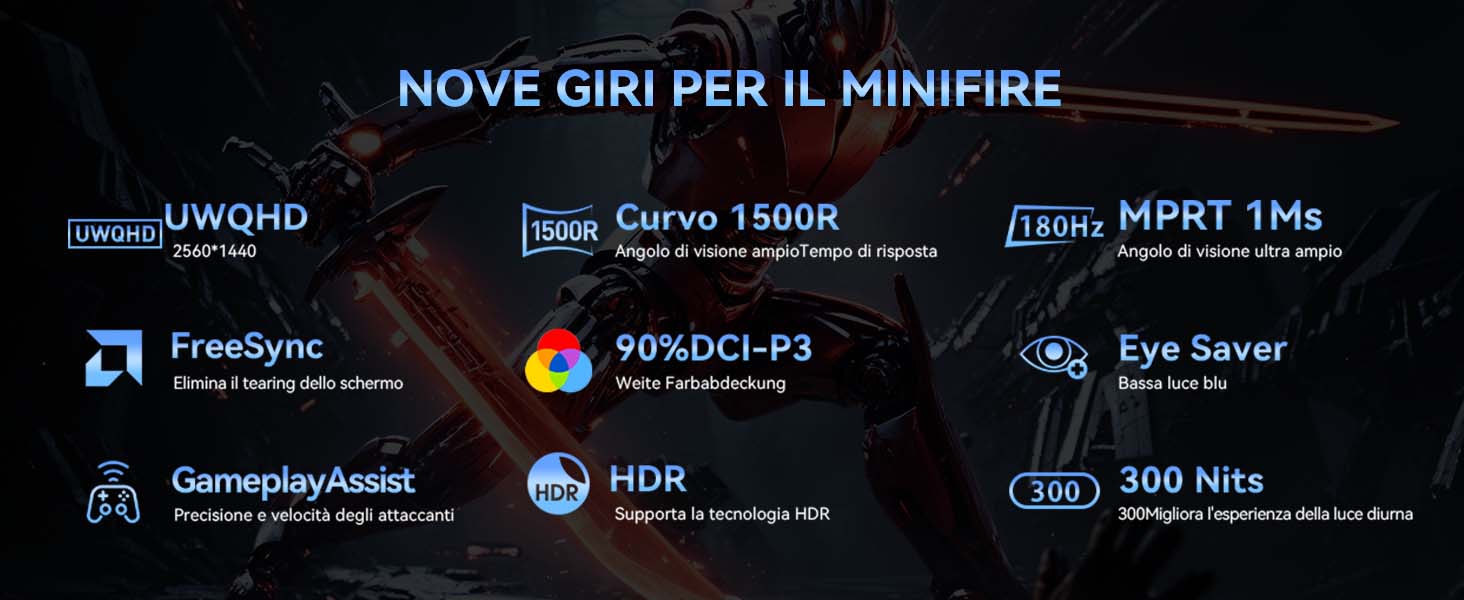 - Monitor da gioco curvo da 32 pollici 1500R UWQHD (2560 x 1440) 180 Hz Fast VA Ultrawide Gaming Monitor. (Cavo DP MFG32C3Q incluso)