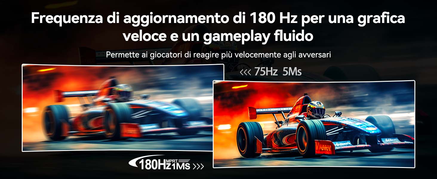 Prestazioni : Frequenza di aggiornamento ultraelevata di 180 Hz | Tempo di risposta MPRT 1 ms丨 AMD FreeSync | Riduzione della luce blu | Senza sfarfallio | Via driver | Le elevate prestazioni soddisfano le esigenze del gioco e dell'ufficio, alleviano l'affaticamento degli occhi e proteggono la salute.