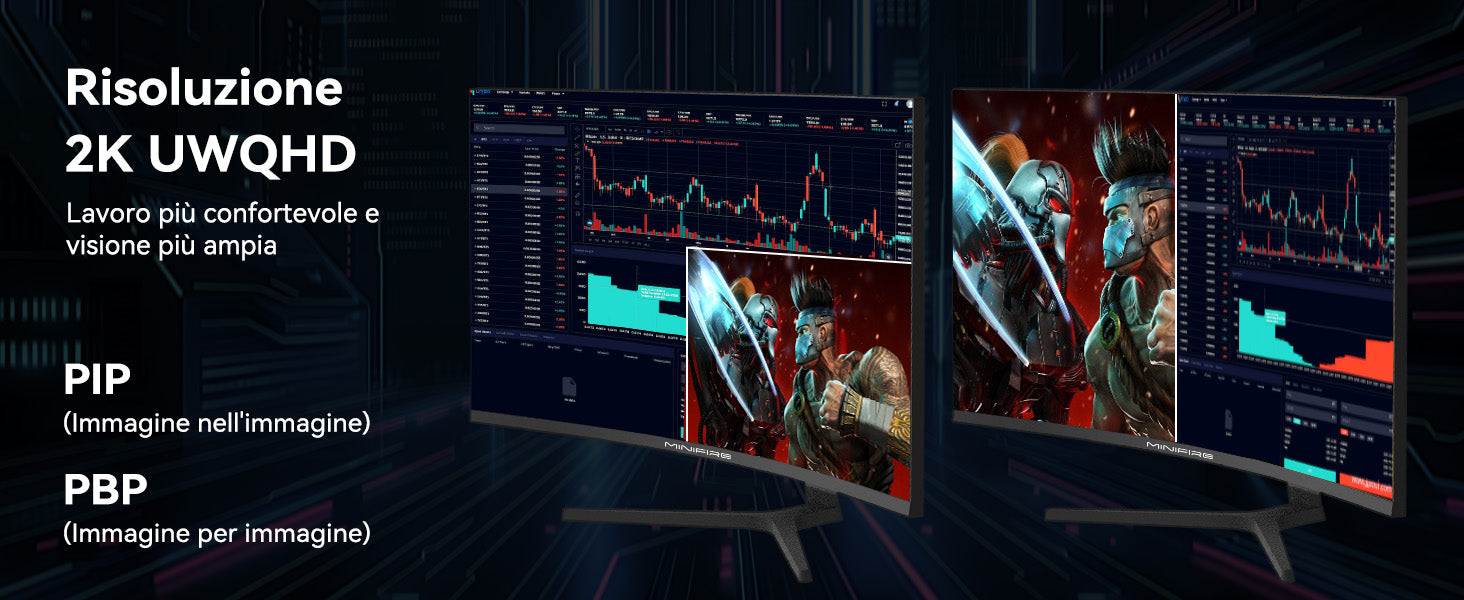 Ingresso e uscita: HDMI 2.1 (TMDS) x 2 (fino a 144 Hz) | DP 1.2 x 2 (fino a 180 Hz) | Audio | Senza altoparlanti.