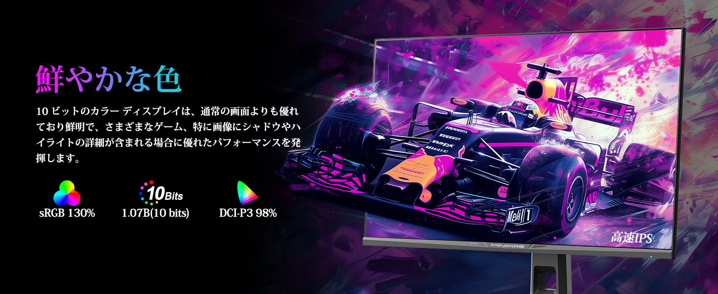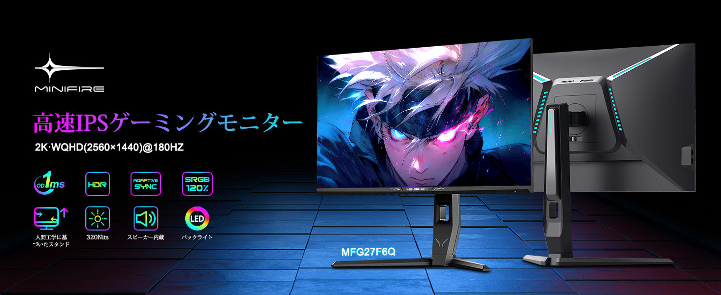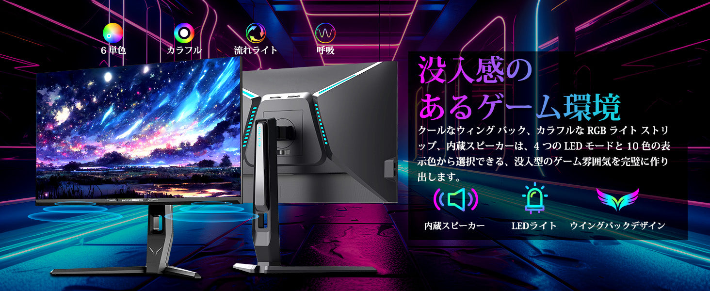 - [画面サイズ] 27インチIPSモニター、[最大解像度] WQHD 2560 x 1440、[アスペクト比] 16:9、[コントラスト比] 1000:1、[明るさ] 320CD/㎡、[カラーガット] DCI-P3 93% SRGB 120%、[色深さ] 107億色、10b ITSおよびHDR互換