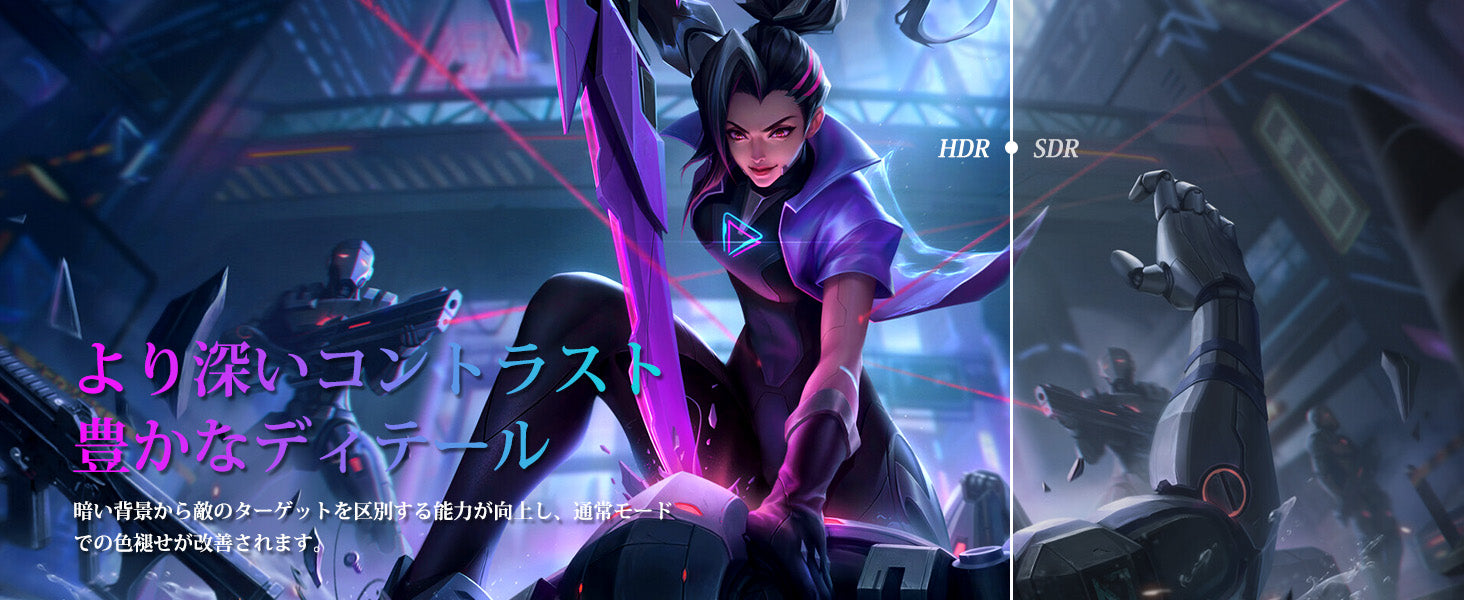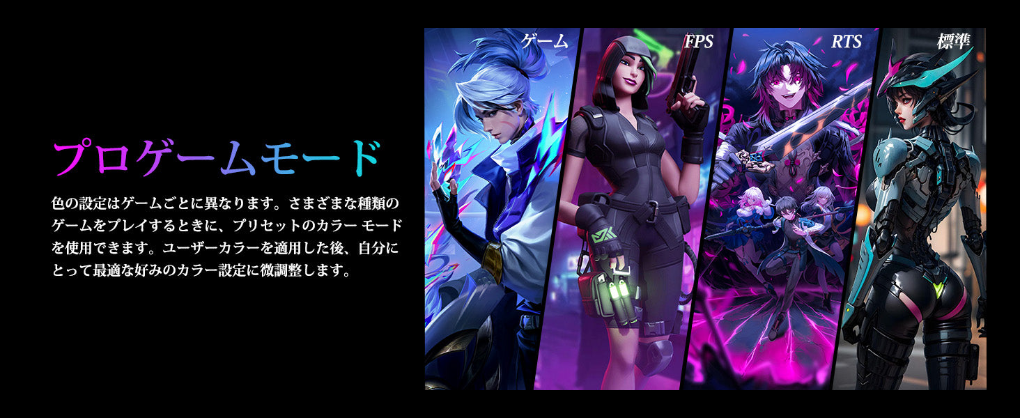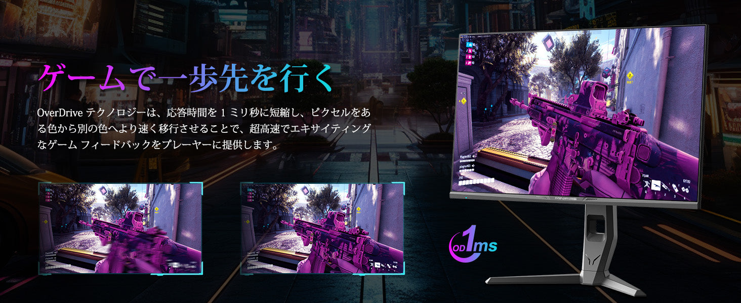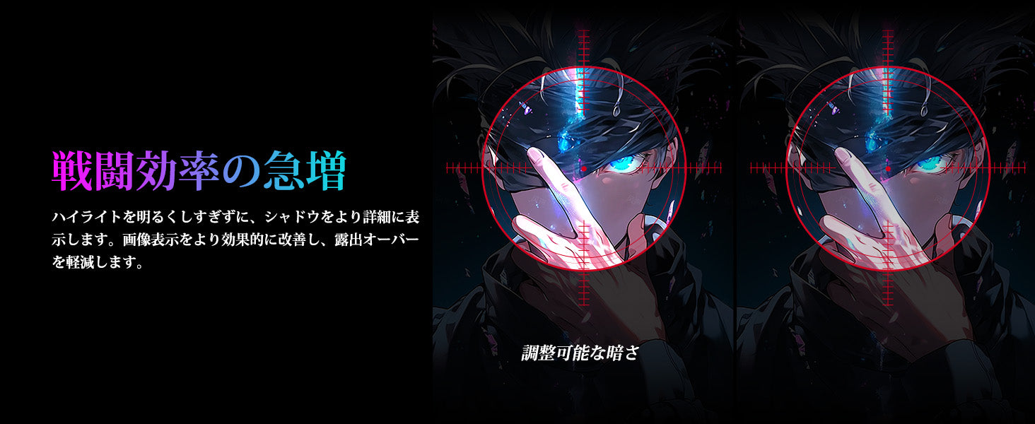 - [ゲームの場合] Adaptive Syncサポートには、通常のモニターと比較して、残留物が少なく、より滑らかな動きの利点があります。暗いシーンでの視認性の向上など、対戦相手の利点を得ることができます