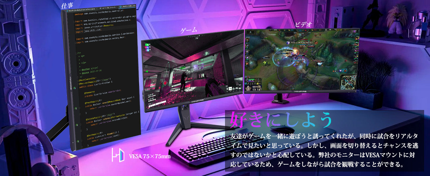 - [リフレッシュレート] 180Hz(DPの場合)、144Hz(HDMIの場合)高いリフレッシュレートおよび[応答速度] 1MS応答速度、[角度調整]前後の角度(-5°〜20°+/- 2°) /ピボット角度(-90°〜 +90°) /スイベル角(25°、右25°)、幅178°の視野、アイケア、青色光の減少、ちらつき。無料およびVESA互換性(75mm x 75mm、リフトスタンド(0-130mm)の高さ