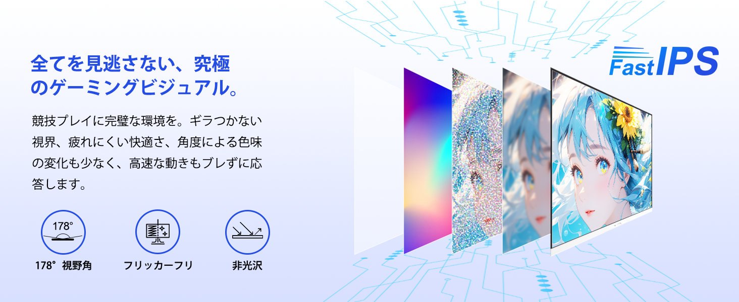 - 320Hz超高リフレッシュレートで、あらゆる動きが圧倒的に滑らかに。 競技プレイヤー待望の320Hz刷新率を実現。従来の144Hzモニターと比較しても、画面の動きは比類なき滑らかさを実現し、超高速な視点移動や素早い敵の動きもブレなく追従します。1msの応答速度とAdaptive-Sync/VRR対応により、画面のティアリングやスタッタリングを完全に排除。競技FPSやシューティングゲームにおいて、微細な動きの認識と超低遅延の操作感を実現し、プレイヤーの反射神経を最大限に勝利へとつなげます。[応答速度]OD 1ms MPRT 1ms、Adaptive Sync、[ゲームモード] Gamer/FPS/RTS/RPG。